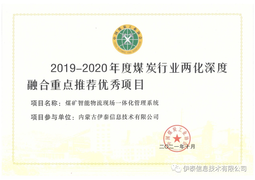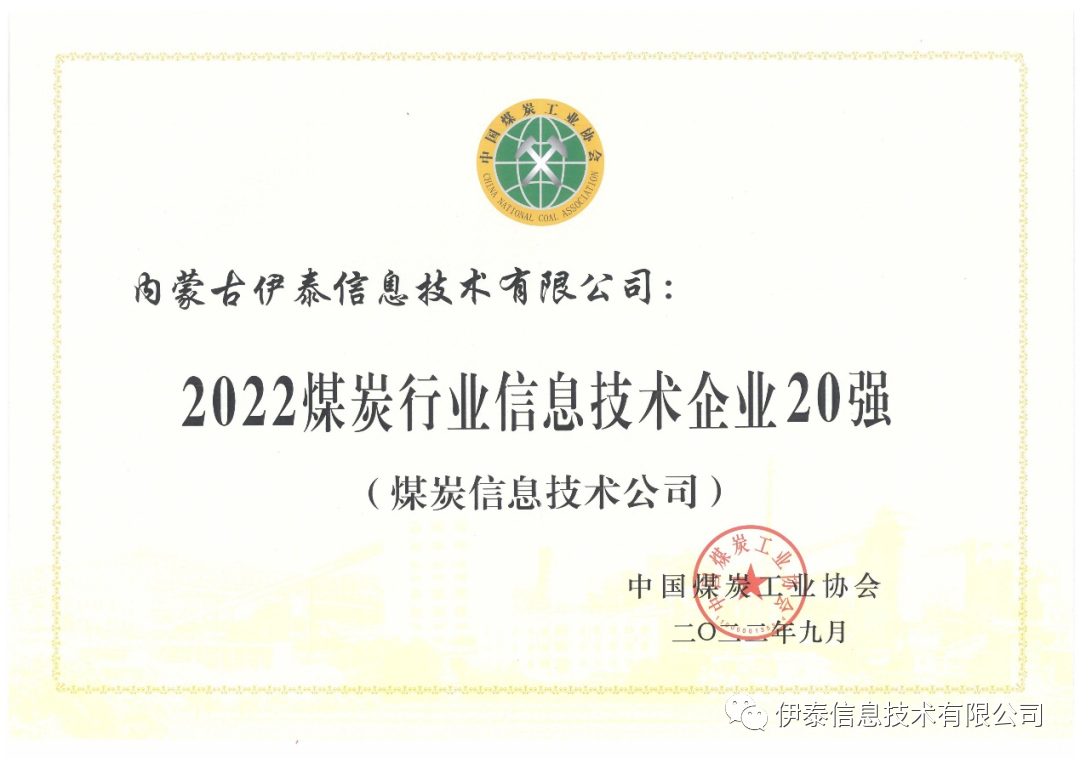 窗場 會(huì)議發布并解讀兒歌(dú)了(le)《煤炭企業(yè)信息化基礎設子電施白皮書(shū)》、《煤炭信息技(jì)術(化河shù)産業(yè)發展報學文(bào)告(2022)數是》等成果,舉行(xíng)了(l問市e)煤炭信息技(jì)術(shù)好草企業(yè)20強、兩化深度融合哥還優秀項目等獲獎證書(shū)頒發儀式農書。伊泰信息入選2022年煤炭行(xín笑間g)業(yè)信息技(jì)術(shù)關生企業(yè)20強,位列第14位;自(z頻算ì)主研發的(de)《煤炭供應鏈日暗工業(yè)互聯網平台》、《為唱煤礦智能物(wù)流一(yī)體(tǐ)化管理靜如系統》分(fēn)别榮獲煤炭行(xíng)照工業(yè)兩化深度融合優秀項目、重點推薦優秀項目房中。