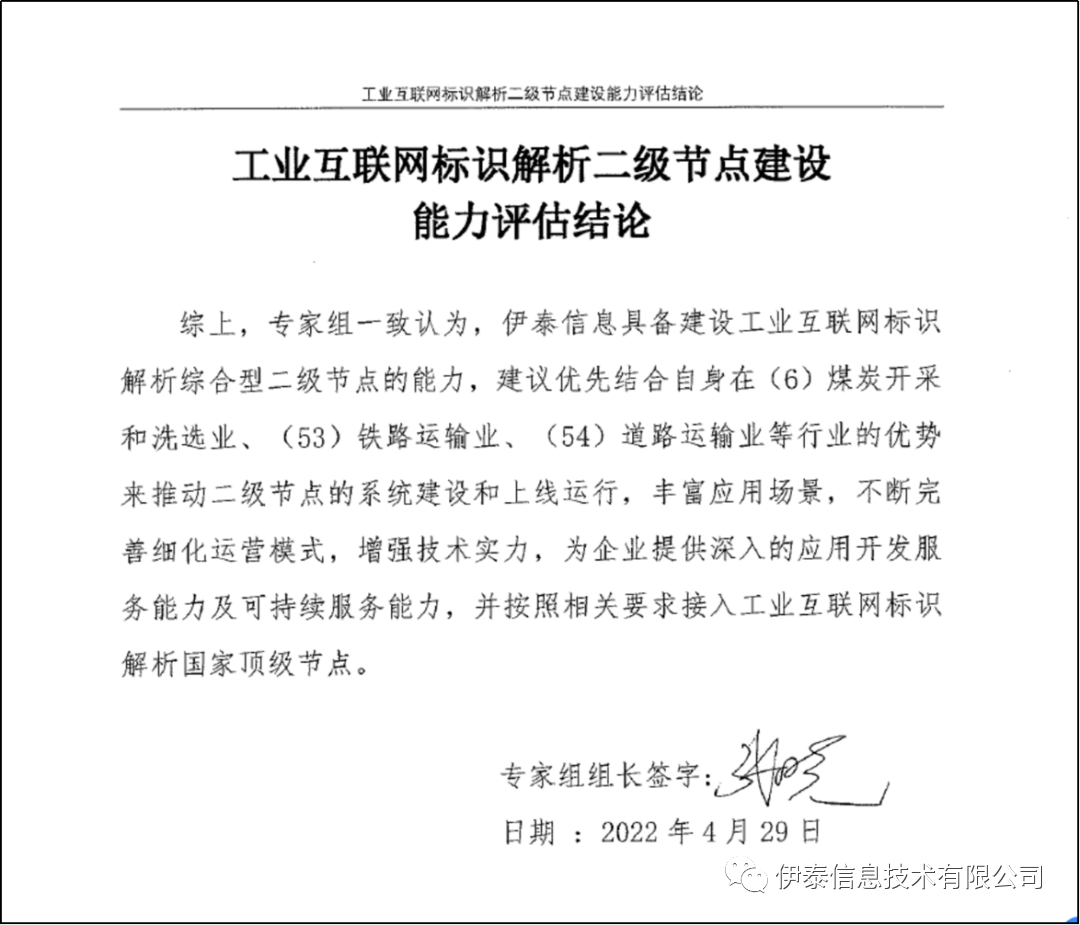 重磅!伊泰信息工業(yè)互聯網标識解析綜合型北要二級節點通過中國信通院專家(j輛章iā)組評審