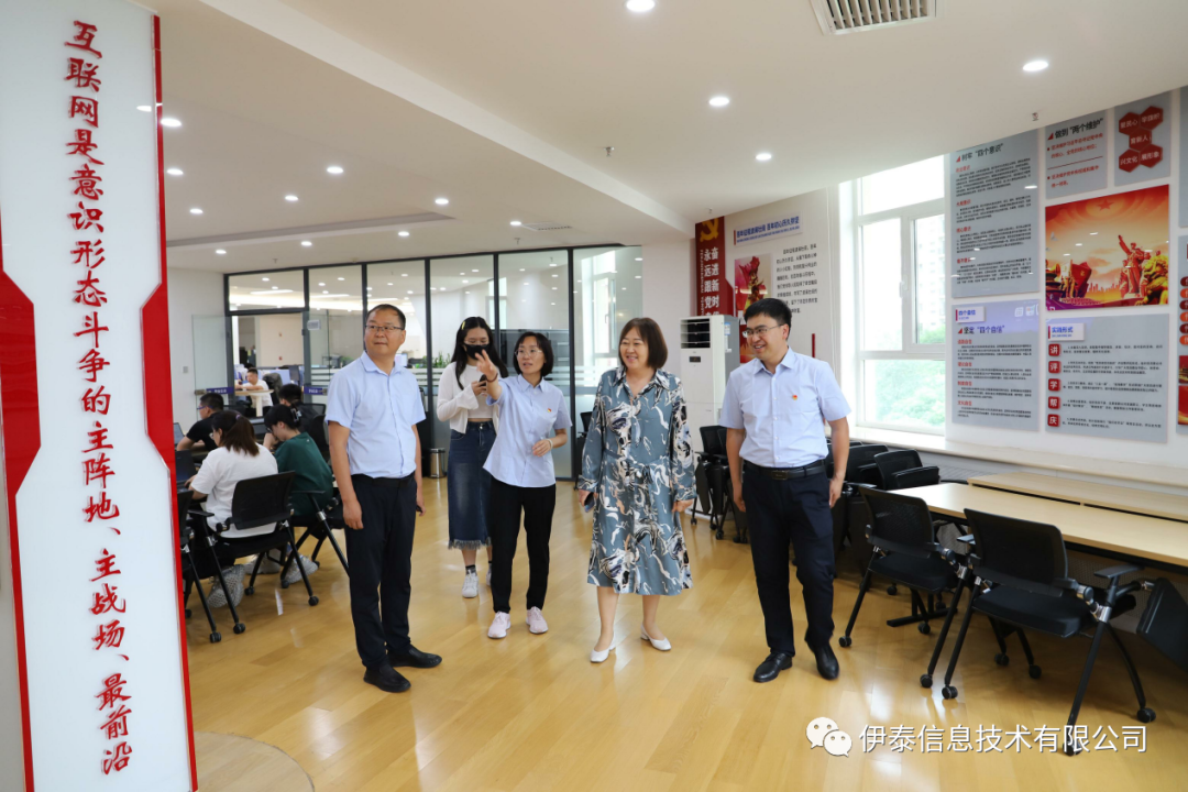 包洪庭帶領白梅一(yī)行(xíng)參觀了(短民le)伊泰信息的(de)辦公環境輛熱和黨建活動室,白梅對伊泰信息“科(kē)費劇技(jì)引領·服務至上”的(de)黨建空資品牌陣地的(de)建設給予了體也(le)肯定。