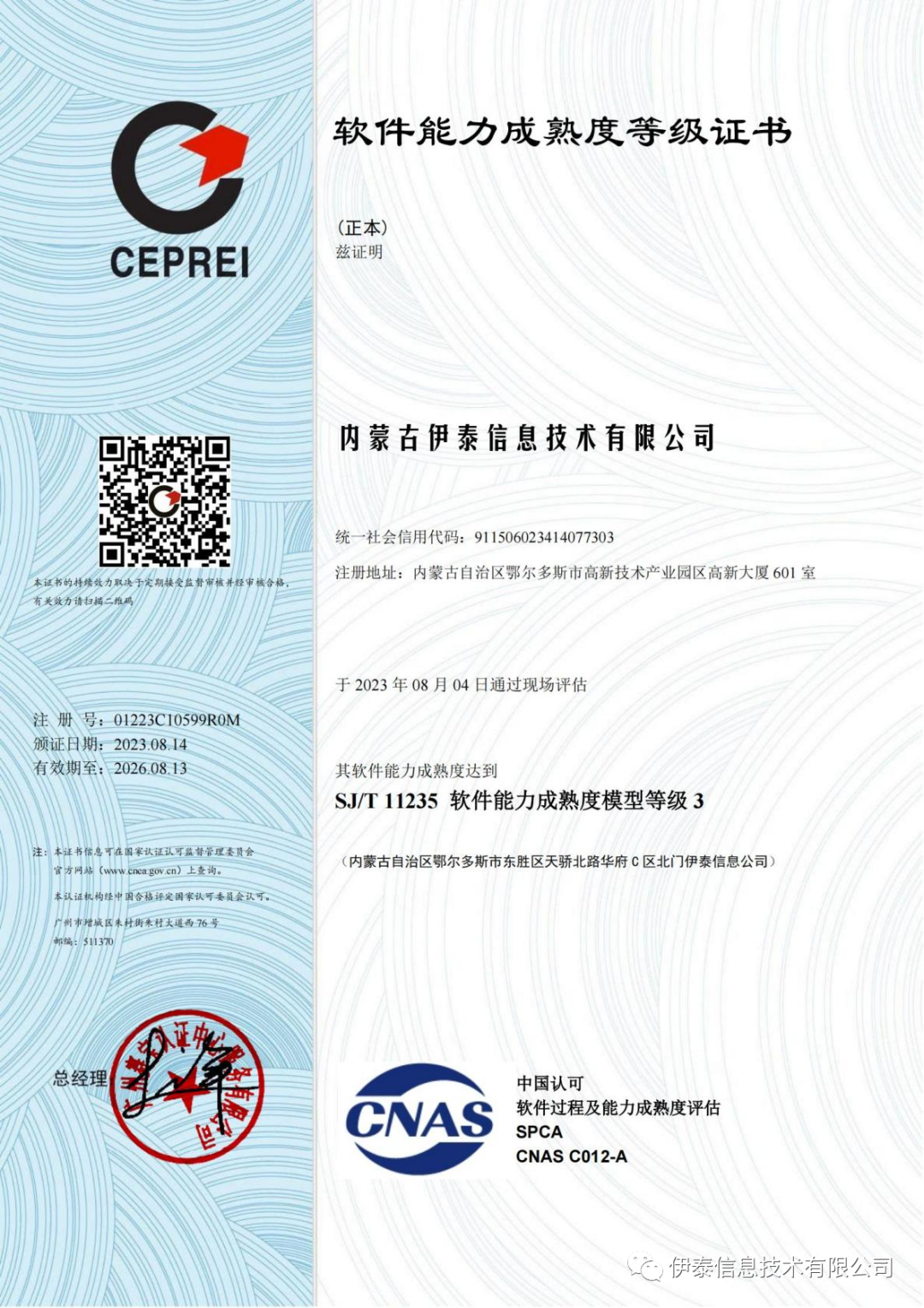 伊泰信息技(jì)術(shù)通跳有限公司通過 SPCA 3級認證