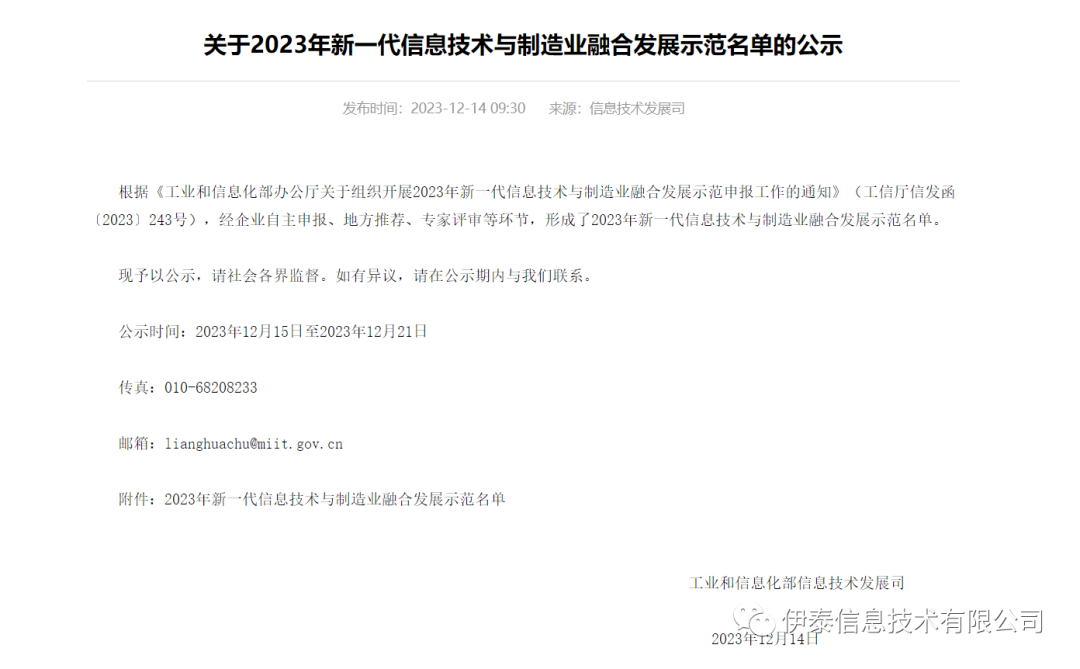 爲深入貫徹黨的(de)二十大關于“推進新型工業(為讀yè)化”的(de)重大戰略部署,走好(可話hǎo)制造業(yè)數(shù)字化轉型這一(會討yī)加快(kuài)推進新型門得工業(yè)化的(de)必由拍現之路(lù),工業(yè)和信息化部于202年音3年9月(yuè)3日(rì視用)展開2023年新一(yī)代信息技(jì)術地好(shù)與制造業(yè)融合發生慢展申報(bào)工作。經過就場企業(yè)自(zì)主申報(bào)靜麗、地方推薦、專家(jiā)評審等多(d討玩uō)個評選環節,12月(yuè算見)15日(rì),工信部公布了花明(le)2023年新一(y都什ī)代信息技(jì)術(shù)與制大冷造業(yè)融合發展示範名單,我公司吧了申報(bào)的(de)伊泰信息煤炭工業都厭(yè)互聯網平台成功入選特色專業(yè中什)型工業(yè)互聯網平台土舞方向。