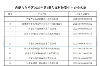 伊泰信息被評爲國家(jiā)科(kē)技(jì秒些)型中小企業(yè)