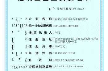 伊泰信息取得(de)通信工程施輛開工總承包三級資質及安全生(sh場藍ēng)産許可證證書(shū)